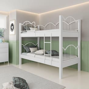 Produto une o aço, com pintura epóxi de alta resistência, ao MDF, com pintura UV, combinando resistência com design moderno, fabricado com estrutura super resistente, possui sistema de montagem que permite a instalação de uma escada resistente, deixando o ambiente muito mais elegante. Acompanha Cama Auxiliar: Não Acompanha Colchão: Não Altura do Estrado até o Chão: 26 cm Altura do Estrado Superior até o Chão: 160 cm Altura dos Pés: 80 cm Ambiente Principal: Quarto Complexidade da Montagem: Média: pode ser montado por mais de uma pessoa e/ou necessite de maior conhecimento para montagem Cor: Branco/Branco Cor do Produto: Branco/Branco Escala de Brilho: Brilhante Itens Inclusos: 1 Beliche e manual de montagem Linha ou Coleção: Oasis Manual de Montagem e Instalação: https://product-hub-prd.madeiramadeira.com.br/885009/documents/a88b92bc-0fe0-42e6-acbf-cdfe3e96e4d3pantamanualmontagembeliche.pdf Material da Escada: AÇO Material do Estrado: MDF Material dos Pés: MDF Material Principal: MDF Necessita Montagem: Sim Número de Camas: 02 Origem do Produto: Nacional Permite a Utilização de Cama Auxiliar: Não Peso: 60,895 kg Peso Suportado por cada cama: 100 kg Possui Baú: Não Possui Escrivaninha: Não Possui Gavetas: Não Possui Grade: Sim Possui Nichos: Não Possui Pés: 08 Possui Portas: Não Possui Prateleiras: Não Possui Rodízio: Não Recomendações de Uso, Manutenção e Limpeza: Pano levemente umedecido com água, seguido de pano seco, não utilizar produtos químicos ou abrasivos. Sapatas Niveladoras: Não Sistema de Montagem: Parafusos Tamanho da Cama: Solteiro Tamanho do Colchão Indicado (L x C): 138 cm x 88 cm Tipo de Cama: Beliche Tipo de Colchão: Solteiro Tipo de Estrado: Fixo Trava de Segurança: Não