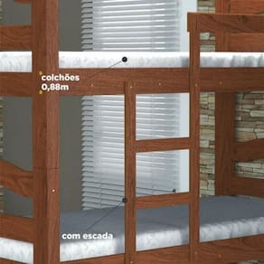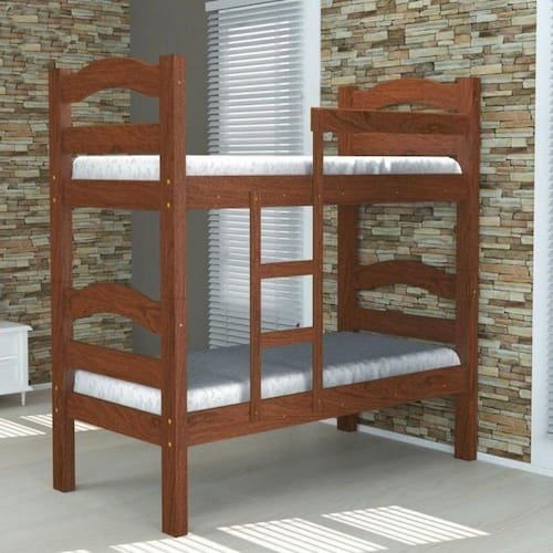 Beliche Solteiro Robusta Madeira Maciça Com Escada Araúna Amêndoa