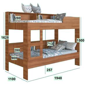 Características do Produto: Marca: Art In Móveis Modelo: San Diego Para colchões de 190 x 90 cm. Altura estrado inferior 32,3 cm. Altura estrado superior 121,2 cm. Montagem esquerda e direita Material: MDP Acabamento: finish foil Ferragens: sim Manual de montagem detalhado: sim Pés: 4 Prateleiras externas: 6 Peso total suportado pelo produto -kg-: 90 Rodízios: 0 Prateleiras internas: 0 Gavetas: 0 Corrediças metálicas: 0 Portas: 0 Dobradicas metalicas: 0 Puxadores: 0