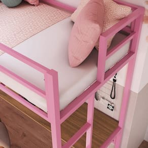 Montagem fácil e prática, sem complicações! Enviamos manual junto com o produto. Produto Montado: Sim Acabamento dos Pés: Poliéster Acompanha Cama Auxiliar: Não Acompanha Colchão: Não Altura do Estrado até o Chão: 1,6 cm Altura do Estrado Superior até o Chão: 1.6000 Altura dos Pés: 0,5 cm Ambiente Principal: Quarto codigo_ean: 7909903966013 Complexidade da Montagem: Baixa: pode ser montado por uma pessoa sozinha Comprimento: 199 cm Cor: Rosa Cor do Produto: Rosa Cor Flex: Não Escala de Brilho: Semi-Brilho Itens Inclusos: Toda parte estrutural do beliche, estrados em ferro e parafusos para o estrado e mdf para mesa. Linha ou Coleção: Beliche Manual de Especificação Técnica: https://product-hub-prd.madeiramadeira.com.br/957837/documents/c1c28acb-9244-4c29-9fa2-02e139b9a0402433684593617284108175626.pdf Manual de Montagem e Instalação: https://product-hub-prd.madeiramadeira.com.br/957837/documents/32e0d733-a079-4a30-85b7-39b22cde7d212433683593617284108127354.pdf Material da Escada: Ferro Material dos Pés: Plástico Material Principal: Aço Medida da Escrivaninha (A x L x P): 45x1.90 Montagem Flex: Não Necessita Montagem: Sim Número de Camas: 02 Origem do Produto: Nacional Permite a Utilização de Cama Auxiliar: Não Peso: 70 kg Peso Suportado por cada cama: 150.0000 Possui Baú: Não Possui Escrivaninha: Sim Possui Gavetas: Não Possui Grade: Sim Possui Nichos: Não Possui Pés: 04 Possui Portas: Não Possui Prateleiras: Não Possui Rodízio: Não Recomendações de Uso, Manutenção e Limpeza: Apenas um pano úmido. Não pode deixar molhada. Sapatas Niveladoras: Não Sistema de Montagem: Encaixe Tamanho da Cama: Solteiro Tamanho do Colchão Indicado (L x C): 1.88x88 Tipo de Cama: Beliche Tipo de Colchão: Solteiro Tipo de Estrado: Removível Trava de Segurança: Sim Marca: Camas e Beliches