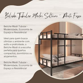 Beliche Tubular Madri Solteiro - Preto Fosco | Para Colchão 0,88m Beliche Madri Tubular - Modernidade, Economia de Espaço e Resistência! Ideal para quem busca otimizar o ambiente com estilo e praticidade, o Beliche Madri é a escolha perfeita para quartos compactos, dormitórios ou alojamentos.