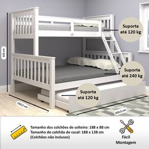 Medidas dos Colchões da Cama Auxiliar (cm x cm): 188x88x14 (Não Incluso)