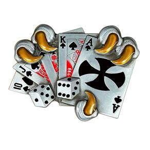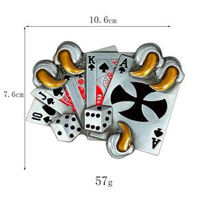 Material: liga leve Peso: 57 g Tamanho: 10,6 x 7,6 cm Design exclusivo de pôquer e dados: apresenta um design arrojado com cartas de baralho, dados e uma garra segurando as cartas, tornando-a uma peça marcante e atraente. Construção em liga de alta qualidade: feita de liga de prata durável para uso duradouro, esta fivela de cinto é resistente e elegante. Estilo ocidental e vintage: um acessório perfeito para roupas com temas ocidentais ou para quem gosta de designs ousados e robustos com um toque de personalidade. Ajuste perfeito para cintos padrão: serve para a maioria dos cintos de até 1,5 polegadas de largura, oferecendo um ajuste confortável e seguro para homens e mulheres. Ótimo para pôquer e eventos ocidentais: ideal para noites de pôquer, rodeios, festas campestres ou roupas casuais, adicionando um toque distinto a qualquer roupa.