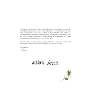 Permeando a história feminina de aceitação, cura da repressão e ascensão ao mercado de trabalho, houve uma perda significativa do contato dentro de seus lares, influenciando uma nova cultura materno-infantil, com hábitos e comportamentos diferentes, que precisam ser compreendidos e acolhidos, uma vez que a mulher atualmente é multifuncional e desempenha um papel sociocultural importante, dentro e fora de seus lares. Convido você a se despir de suas crenças limitantes e caminhar comigo pela história, para que possamos encontrar juntas um caminho de volta. Com carinho, Anahi.