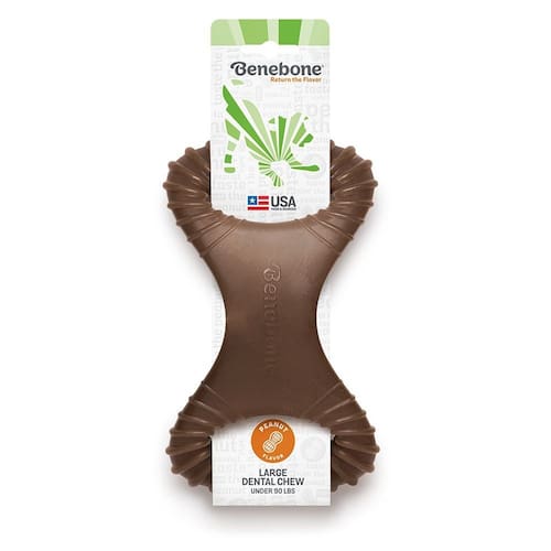 Chegou o osso de Nylon mais famoso do mundo Feito com ingredientes naturais, Benebone é mundialmente conhecida pela durabilidade e por despertar enorme interesse dos cães, fazendo com que fiquem roendo por horas Todo cão possui um instinto natural de mastigar, e Benebone é a solução para um cão feliz e satisfeito. Com um sabor irresistível de Bacon de verdade, Benebone garante satisfazer o desejo de seu melhor amigo, mantendoo saudável e alegre. Características Únicas: Sabor de verdade -Utilizamos somente ingredientes 100% naturais e verdadeiros, para um sabor irresistível. Nosso Bacon é produzido somente nos Estados Unidos, e utilizamos um processo único aonde o sabor é injetado por igual no produto inteiro. Para os cães, isso faz uma enorme diferença. Design DogFriendly - como os cães não tem dedos, criamos um produto com design inteligente, para que o cão consiga roêlo sempre, não importa se o produto está de pé, deitado ou de cabeça para baixo. Ele sempre terá uma ponta virada para cima, para que o cão possa facilmente roer. Produtos Americanos - todos os nossos ingredientes são produzidos nos Estados Unidos, garantindo uma qualidade sem igual. Design Dental - ajuda a garantir e a cuidar da saúde dentaria e bucal do seu melhor amigo Ingredientes - Nylon e Amendiom. Medidas aproximadas: Comprimento cm : 14 Largura cm : 26 Altura cm : 6 Tamanho: G Ean: 854111004118 Ean: 854111004293
