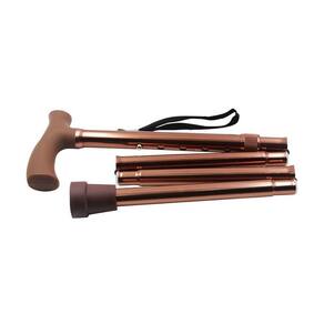 Bastão de Alumínio Dobrável bronze de fácil desmontagem e prático.Confeccionado em alumínio Anodizado de 3/4, com 5 pontos de regulagem de altura através de pino de pressão de fácil ajuste.Com cabo em material plástico e ponteiras 3/4 em borracha com arruelas metálica interna para reduzir o desgaste precoce.Medidascapacidade: Até 80 kg.Tamanho ajustável (mínimo: 84 cm - máximo: 95 cm