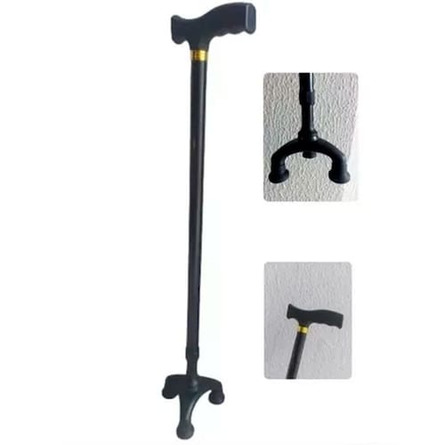 Bengala De Caminhada 3 Apoios Leve Anti Impacto Com Altura Ajustável 64CM a 101,5CM Cor: Preta A Bengala 3 Pontas com Apoio foi desenvolvida para auxiliar pessoas com mobilidade reduzida, proporcionando apoio e estabilidade para prevenir quedas durante a caminhada. O recurso é resistente, leve e possui apoio de mão com cantos arredondados e design ergonômico, que contribui para melhor distribuição da pressão palmar e proporciona conforto durante o uso. O dispositivo conta com 10 níveis de ajuste de altura. A bengala contém base de apoio ampliada, com 3 ponteiras que oferecem melhor aderência ao solo, gerando estabilidade e segurança ao caminhar.