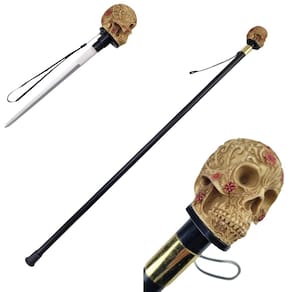Bengala em Aço Com Lâmina Oculta Cabo Caveira Mexicana