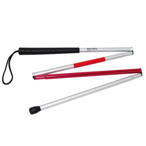 A bengala dobrável em alumínio para deficiente visual Supermedy dobra-se em 4 partes de tamanho igual para facilitar o transporte.É confeccionada em tubo de alumínio resistente garantindo durabilidade.É equipada com alça para que não caia da mão do deficiente.Ponteira em nylon.A empunhadura da bengala é confortável e bem aderente, evitando que escorregue.Indicada para usuários de 1,50 a 2 metros de altura.Comprimento: 1,30 metros.