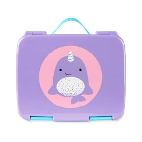 Bento Box Spark Style Baleia Narval - Skip Hop Embale porções perfeitas para crianças com nossa resistente e super fofa lancheira bento Spark Style. Uma solução completa para o almoço, até os mais exigentes da família vão adorar comer tudo o que você embalar na bandeja dividida e recipientes separados com tampas. Uma vedação segura ajuda a evitar bagunça, enquanto as travas para crianças são fáceis para as mãos pequenas abrirem e fecharem sozinhas. Melhor ainda Pode ser lavado na lava-louças, então a limpeza é fácil.