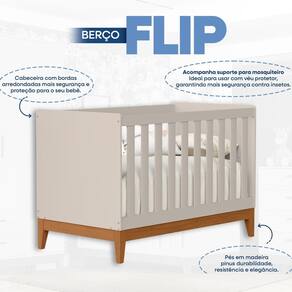 Pensado para acolher os primeiros sonhos do seu bebê, o Berço Flip une design delicado, segurança certificada e praticidade. Acompanha o crescimento da criança ao se transformar em mini cama, tornando cada fase ainda mais especial.