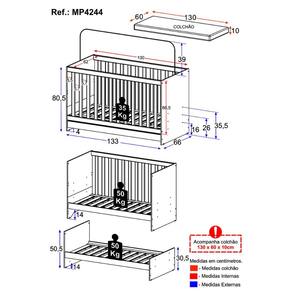 Berço - Altura: 80,5cm | Largura: 133cm | Profundidade: 66cm