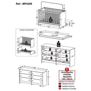 Dimensões do Berço - Altura: 80,5cm | Largura: 133cm | Profundidade: 66cm
