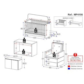 Berço - Altura: 80,5cm | Largura: 133cm | Profundidade: 66cm
