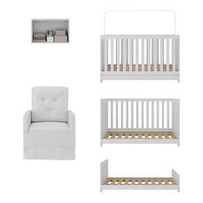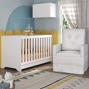 Berço 3 em 1 com Colchão Poltrona e Armário Aéreo 2 Portas Multimóveis MP4165 - Branco
