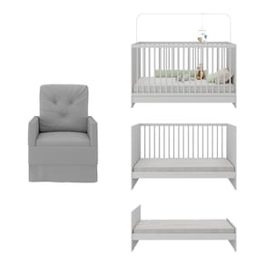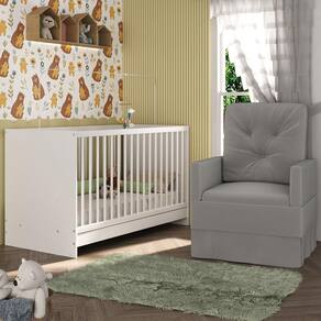 O Berço 3 em 1 com Poltrona Amamentação Multimóveis MP4141 é perfeito para proporcionar conforto ao seu pequeno. O berço produzido em MDP com acabamento acetinado (cerca de 20% de brilho) é padrão nacional (tamanho do colchão 1,30 x 0,60), se transforma em sofá e minicama, acompanhando o crescimento do seu filho, possui 3 regulagens de altura para o colchão e acompanha suporte para mosquiteiro, garantindo noites mais tranquilas de sono para o bebê. As grades em MDF/madeira maciça de pinus garantem maior estabilidade e segurança para o bebê. Selo de certificação do INMETRO: 0000085/2018. NÃO acompanha colchão. A poltrona de amamentação (suporta até 110kg) é produzida em madeira de eucalipto e espuma densidade D23 com molas reforçadas e mecanismo de balanço. As poltronas nas cores cinza e bege possuem acabamento em tecido veludo. Poltrona na cor branca possui acabamento em material sintético.