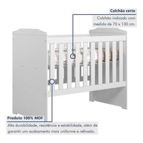 Vale a pena comprar um berço que vira caminha? Sim! É uma ótima opção para quando o bebê já está mais independente, mas ainda precisa de uma cama segura e de altura baixa. Acabamento: Pintura UV Acompanha Cama Auxiliar: Não Acompanha Móbile: Não Acompanha Suporte para Mosquiteiro: Sim - Sem Véu Altura: 99 cm Altura do Estrado até o Chão: 49,5 cm Ambiente Principal: Quarto de Bebê Berço 3 em 1: Sim Certificado: OCAN-BER.278/19-3 codigo_ean: 7900288083050 Complexidade da Montagem: Média: pode ser montado por mais de uma pessoa e/ou necessite de maior conhecimento para montagem Cor: Branco Cor do Produto: Branco Escala de Brilho: Acetinado Estilo: Clássico Estrado com Regulagem de Altura: Sim Estrado Regulável em Quantas Posições: 03 Informações Complementares: Travessão em MDF 25mm e ripas em MDF 6mm. Itens Inclusos: 1 Berço, 1 Manual de Montagem, 1 Kit Ferragem Largura: 72,5 cm Linha ou Coleção: Carinho Manual de Montagem e Instalação: https://cdn2.madeiramadeira.com.br/atributo/tigus-baby/2719881-732-17407457027787.pdf Marca: Tigus Baby Material da Grade: MDF Material do Estrado: MDF Material Principal: MDF Multifunção Flex: Berço/Caminha/Sofazinho Necessita Montagem: Sim Opções de Altura do Estrado: 3 Origem do Produto: Nacional Permite a Utilização de Cama Auxiliar: Não Peso: 36,5 kg Pintura Atóxica: Sim Portátil: Não Possui Gavetas: Não Possui Pés: Não Possui Portas: Não Possui Prateleiras: Não Profundidade: 132,4 cm Recomendações de Uso, Manutenção e Limpeza: Não utilizar produtos químicos. Não utilizar produtos abrasivos. Não molhar. Utilizar pano macio e seco ou levemente umedecido. Sistema Anti-Refluxo: Não Sistema de Montagem: Parafusos auto-atarrachantes, cavilhas e buchas internacionais. Suporta Até (kg): 30 kg Tamanho do Colchão Indicado (L x C): 130 x 70 x 10 Tipo de Berço: Berço Americano Tipo de Estrado: Removível Tipo de Grade: Móvel
