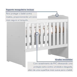 Qual é a vantagem de um berço com suporte para mosquiteiro? Ele protege o bebê de insetos, sem o uso de repelentes ou produtos químicos no quarto.