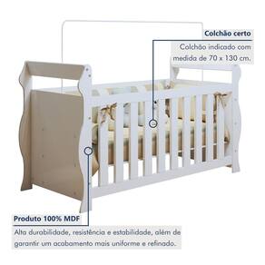Vale a pena comprar um berço que vira caminha? Sim! É uma ótima opção para quando o bebê já está mais independente, mas ainda precisa de uma cama segura e de altura baixa. Acabamento: Pintura UV Acompanha Cama Auxiliar: Não Acompanha Móbile: Não Acompanha Suporte para Mosquiteiro: Sim - Sem Véu Altura: 88 cm Altura do Estrado até o Chão: 40 cm Ambiente Principal: Quarto de Bebê Berço 3 em 1: Sim Certificado: OCAN-BER.278/19-3 codigo_ean: 7900288083036 Complexidade da Montagem: Média: pode ser montado por mais de uma pessoa e/ou necessite de maior conhecimento para montagem Cor: Branco Cor do Produto: Branco Escala de Brilho: Acetinado Estilo: Clássico Estrado com Regulagem de Altura: Sim Estrado Regulável em Quantas Posições: 03 Informações Complementares: Travessão em MDF 25mm e ripas em MDF 6mm. Itens Inclusos: 1 Berço, 1 Manual de Montagem, 1 Kit Ferragem Largura: 75 cm Linha ou Coleção: Star Manual de Montagem e Instalação: https://cdn2.madeiramadeira.com.br/atributo/tigus-baby/2719882-732-17407457127258.pdf Marca: Tigus Baby Material da Grade: MDF Material do Estrado: MDF Material Principal: MDF Multifunção Flex: Berço/Caminha/Sofazinho Necessita Montagem: Sim Opções de Altura do Estrado: 3 Origem do Produto: Nacional Permite a Utilização de Cama Auxiliar: Não Peso: 33,5 kg Pintura Atóxica: Sim Portátil: Não Possui Gavetas: Não Possui Pés: Não Possui Portas: Não Possui Prateleiras: Não Profundidade: 147 cm Recomendações de Uso, Manutenção e Limpeza: Não utilizar produtos químicos. Não utilizar produtos abrasivos. Não molhar. Utilizar pano macio e seco ou levemente umedecido. Sistema Anti-Refluxo: Não Sistema de Montagem: Parafusos auto-atarrachantes, cavilhas e buchas internacionais. Suporta Até (kg): 30 kg Tamanho do Colchão Indicado (L x C): 130 x 70 x 10 Tipo de Berço: Berço Americano Tipo de Estrado: Removível Tipo de Grade: Móvel