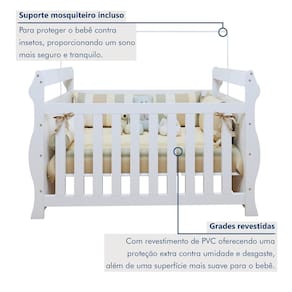 Qual é a vantagem de um berço com suporte para mosquiteiro? Ele protege o bebê de insetos, sem o uso de repelentes ou produtos químicos no quarto.