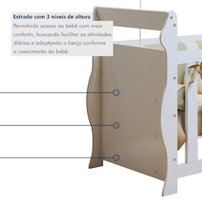 Transforme o quartinho do seu bebê em um verdadeiro cantinho de conforto! Nosso berço 100% MDF combina um design sofisticado com a praticidade. Com 3 níveis de altura, ele se ajusta ao crescimento do seu pequeno, garantindo segurança e bem-estar desde os primeiros dias. Os detalhes arredondados dão um toque de charme e aconchego, criando um ambiente acolhedor e encantador. Além de lindo, é resistente e funcional, pensado para tornar cada momento ainda mais especial.