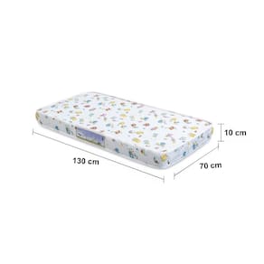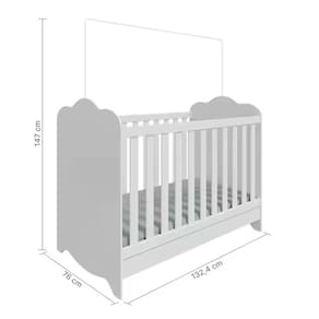 10x70x130 cm, encaixa perfeitamente no berço, oferecendo suporte adequado para crianças de até 3 anos e até 30 kg. O acabamento branco estampado garante durabilidade e visual delicado.