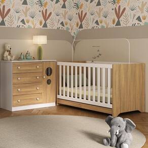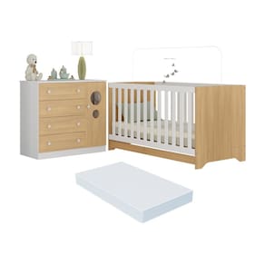 Berço Americano 3 em 1 com Colchão Incluso e Cômoda 1 Porta 4 Gavetas Pirulito Multimóveis MP4715 - Branco | Marrom