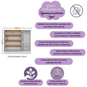- Sistema antitombamento na cômoda: proporciona segurança para o bebê e tranquilidade aos pais.