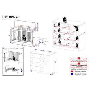 Dimensões do Produto Montado: Berço - Altura: 80,5cm | Largura: 133cm | Profundidade: 77,5cm Cômoda - Altura: 83cm | Largura: 95cm | Profundidade: 42cm *Você pode consultar as medidas detalhadas na imagem técnica do produto.