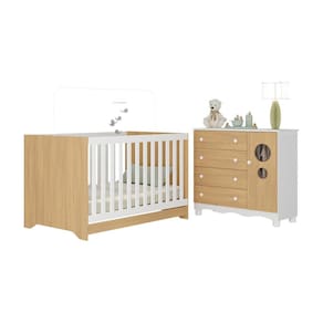 Berço Americano 3 em 1 com Cômoda 1 Porta 4 Gavetas Suspiro Multimóveis MP4710 - Branco | Marrom