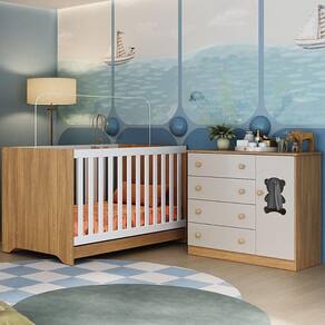 Diferenciais: - 3 anos de garantia contra defeitos de fabricação e material. - Conjunto produzido em madeira de reflorestamento (MDP 12/15mm) com acabamento acetinado (cerca de 20% de brilho): sustentabilidade e durabilidade. - Berço 3 em 1 que se transforma em sofá e minicama, acompanhando o crescimento do bebê. Grade Soft (PVC): ecologicamente correta, com matéria-prima livre de metais pesados, atóxica e com proteção antiamarelamento. - Lastro em madeira com 3 regulagens de altura e suporte para mosquiteiro para noites mais tranquilas e protegidas. - Berço certificado pelo INMETRO (Selo n 000085/2018). - Padrão americano (tamanho do colchão indicado: 130x70cm). Colchão não incluso. - Cômoda com 1 porta, 4 gavetas (frontais em MDF) e rodapé: amplo espaço interno e elegância. - Sistema antitombamento na cômoda: proporciona segurança para o bebê e tranquilidade aos pais. - Porta com detalhe de vidro incolor temperado (3mm): toque charmoso que permite visualizar o interior do móvel. - Corrediças telescópicas: abertura total e silenciosa das gavetas. - Cabideiro de alumínio: permite acomodar as roupinhas para que não amassem. - Puxadores em ABS delicados e práticos.