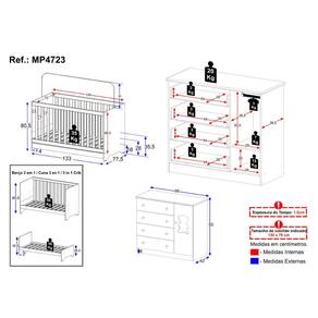 Dimensões do Produto Montado: Berço - Altura: 80,5cm | Largura: 133cm | Profundidade: 77,5cm Cômoda - Altura: 83cm | Largura: 95cm | Profundidade: 42cm *Você pode consultar as medidas detalhadas na imagem técnica do produto.