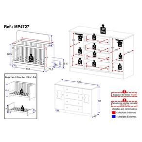 Dimensões do Produto Montado: Berço - Altura: 80,5cm | Largura: 133cm | Profundidade: 77,5cm Cômoda - Altura: 83cm | Largura: 125cm | Profundidade: 42cm *Você pode consultar as medidas detalhadas na imagem técnica do produto.