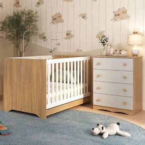 Berço Americano 3 em 1 com Cômoda 4 Gavetas Realeza Multimóveis MP4689 - Madeirado | Off White