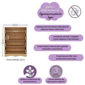 - Sistema antitombamento na cômoda: proporciona segurança para o bebê e tranquilidade aos pais.