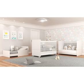O berço é padrão americano (tamanho do colchão: 130 x 70 cm), 3 em 1 (se transforma em sofá e minicama), certificado pelo INMETRO e está disponível na cor Branco Premium.