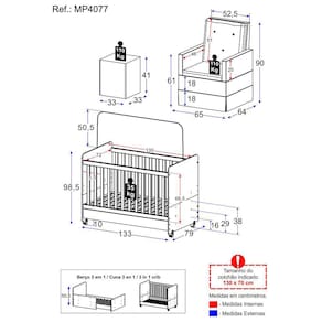 Berço - Altura: 98,5cm | Largura: 133cm | Profundidade: 79cm