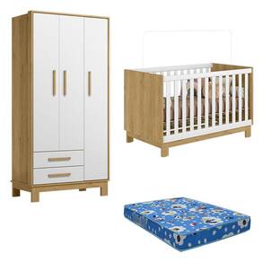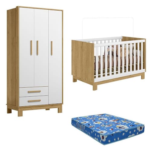 Berço Americano 4315 e Guarda Roupa 4340 Q Encanto Slim Branco Acetinado com Colchão Ortobom – Qmovi