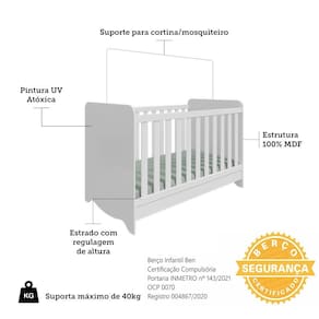 Tamanho do Berço (L x A x P): 132,4 x 97,4 x 76 cm