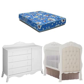 Berço Americano Capitone com Colchão e Cômoda Infantil 1 Porta Realeza Branco Acetinado – Canaã