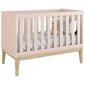 Berço Americano New Classic Rosa com Pés Madeira Natural – Reller