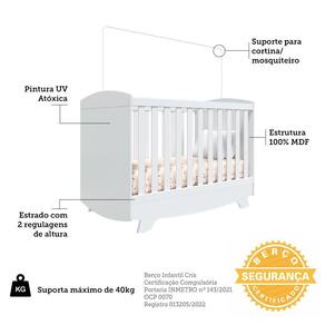 O Berço Americano Cris Retrô 3 em 1 é a escolha perfeita para quem busca versatilidade, segurança e estilo no quarto do bebê. Com estrutura em MDF e pintura UV atóxica, ele possui certificação INMETRO e pode ser utilizado como berço, mini cama ou mini sofá, acompanhando o crescimento da criança. Oferece 2 regulagens de altura do estrado, grades fixas, molduras com bordas arredondadas e laqueadas, além de suporte para mosquiteiro. E para completar o Colchão Baby Physical da Ortobom vai proporcionar noites mais tranquilas a aconchegantes.