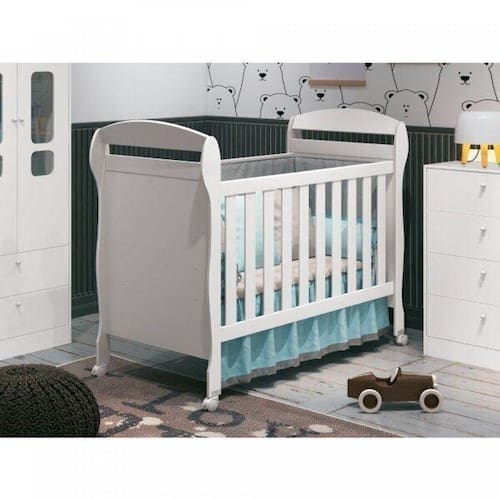 Berço Americano Danny Reller Móveis Branco Brilho. Um design agradável, flexível às fases do bebê; torna-se um sofá cama com proteções, ideal para as mamães que procuram por um berço prático e harmonioso. CARACTERÍSTICAS - Berço Certificado (Registro 006366/2018) - Transforma-se em sofá cama. - 03 posições de estrado com regulagem prática. - Acompanha suporte para mosquiteiro. - Dois rodízios com travas. Marca: Móveis Reller Ean: 7908506211193