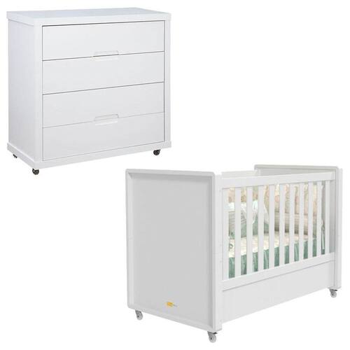 Berço Americano e Cômoda Gaveteiro Infantil Tutto New Branco Acetinado - Matic