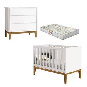 Berço Americano e Cômoda Gaveteiro New Classic Branco com Pés Madeira e Colchão Gazin ? Reller