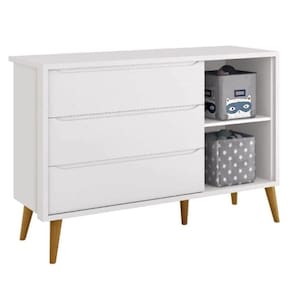Cômoda Infantil Theo 1 Porta Branco com Pés Amadeirados Reller
