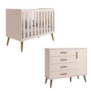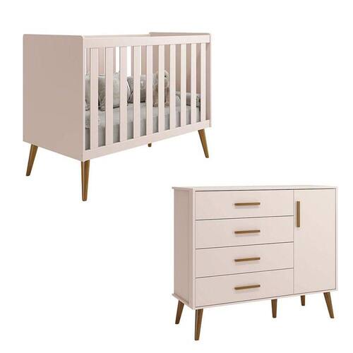 Berço Americano e Cômoda Infantil com Porta Isis Rosa Acetinado - Reller
