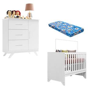 Berço Americano e Cômoda Retro Maya Branco Acetinado com Colchão Ortobom Canaã
