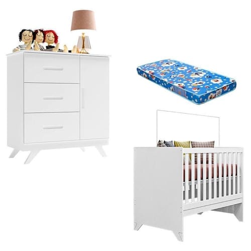 O quartinho do bebê com os móveis perfeitos pertinho de você! Apresentamos o Berço e Cômoda da linha Maya desenvolvidos pela Canaã e colchão da Ortobom, pensado e desenvolvido com todo carinho para auxiliar a mamãe e o papai. Seu design retro transmite um estilo clássico e moderno ao ambiente, deixando o quartinho com um toque especial e acolhedor. Não perca tempo e garanta já o seu!