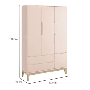 Guarda Roupa Infantil New Classic 3 Portas Rosa com Pés Madeira Natural – Reller